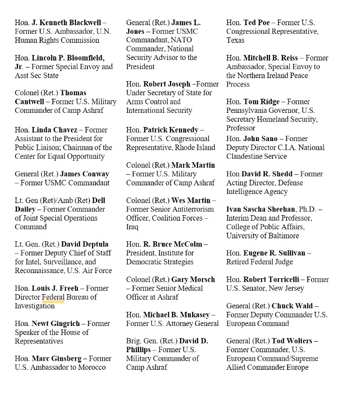 Among the signatories are Gingrich, former U.S. Ambassador to Morocco Marc Ginsberg, Ret. Gen. James L. Jones, 32nd Commandant of the Marine Corps, and former Rep. Ted Poe.